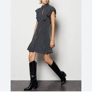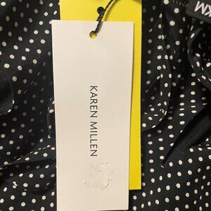 Brand New, Never Worn! Karen Millen Black White Ruffle Keyhole Tie Neck Dress Size 6