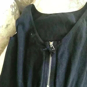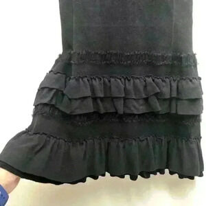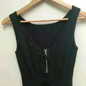 Body hugging Black sleeveless Low back Zips at the back 81% cotton 17% polyamide 2% elastane Ruffle - silk Great preowned condition Size 2 Pit to pit 14.5" Length 35"