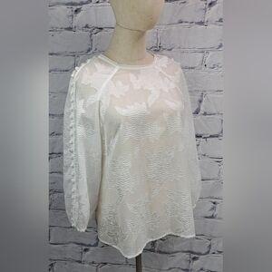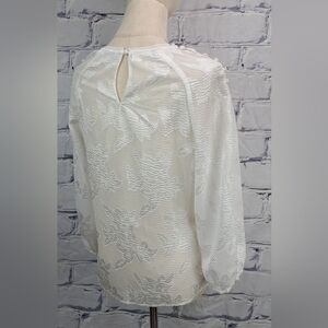 Karen Millen Women's Blouse Vintage Y2K Pure White Floral Buttoned Sleeves 8 US
