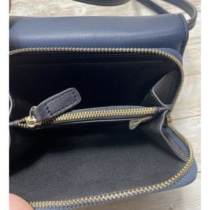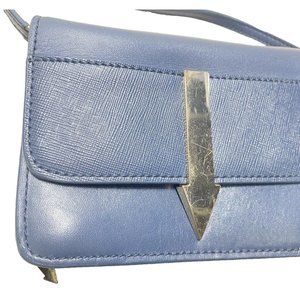 Karen Miller Leather Purse Blue/ Gold Accent Handbag Clutch - As is Condition