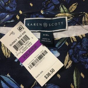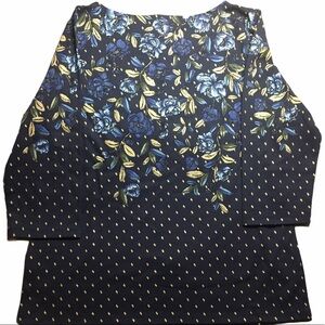 Karen Scott 3/4 Sleeve Embellished Embroidered Blue Floral Top Plus Size XXL
