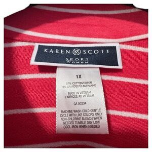 Karen Scott Cotton And Spandex Red Striped Top With Snap closure size 1X