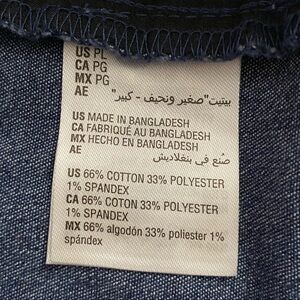 Fabric: 66% Cotton, 33% Polyester, 1% Spandex