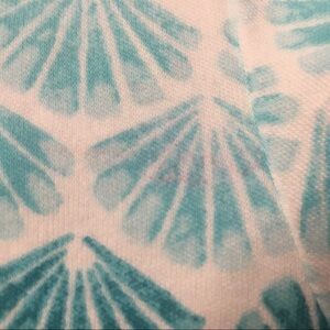 Features: turquoise, seashells pattern, ombre, boatneck, folded sleeves, cotton, short sleeves, t shirt, casual, summer, beach, vacation, coastal