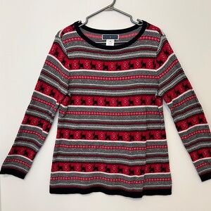 Karen Scott Red Nordic Fair Isle Print Pullover Sweater Scottie Dog Sz Medium