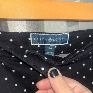 Embrace effortless style with this Karen Scott skater mini skirt, showcasing a chic black and white polka dot design. Perfect for casual outings or a night out, its structured fabric ensures a flattering fit that maintains its shape. The clean waistband adds a touch of sophistication to this versatile piece.