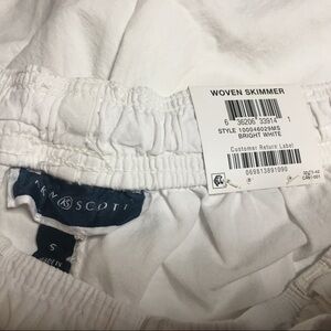 Features: white, bright white, woven skimmer, comfort waist, below knee, cotton, belt loops, drawstring waist, 2 front pockets, relaxed fit, modest, casual, summer, outdoors