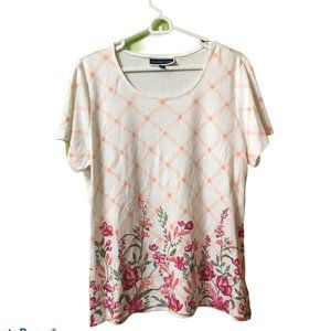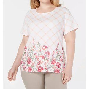 Karen Scott Women's PLUS Check Print Floral Casual Top T-Shirt Size 0X NWT