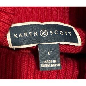 Karen Scott Womens Red & Black Turtleneck Long Sleeve Sweater L 100% Cotton