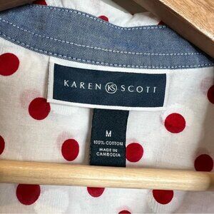 Karen Scott Womens Size Medium Red White Polka Dot Sleeveless Button Up Blouse