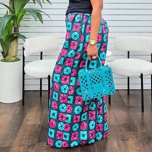 Step into effortless style with our Karisma Ankara Baggy Pants, crafted from vibrant African wax print fabric. Featuring an eye-catching mix of colorful geometric patterns, these pants are the perfect blend of comfort and cultural expression.
