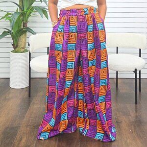 Step into effortless style with our Karisma Ankara Baggy Pants, crafted from vibrant African wax print fabric. Featuring an eye-catching mix of colorful geometric patterns, these pants are the perfect blend of comfort and cultural expression. ✨ Features: One size fits S, M, L, XL, 2XL Wide-leg, relaxed fit for ultimate comfort Elasticated waistband for a flexible, flattering fit Deep side pockets – practical and stylish Full-length (45 inches) – ideal for tall queens or pairing with heels Made with breathable, durable cotton Ankara fabric Dress it up with a sleek top and heels or go casual with a tee and flats – either way, you're sure to turn heads. 🛒 Add this vibrant staple to your wardrobe and celebrate style with soul.