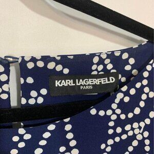 Karl LAGERFELD woman’s navy/white dress with sheer sleeves. Lined. Size 8. Cutou