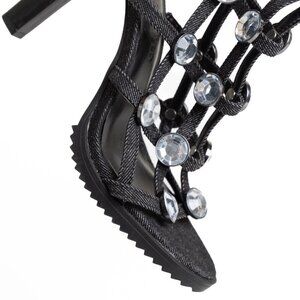✨ Karl Lagerfeld Beatriz Rhinestone Faux Crystal Gladiator Sandal Heel Black