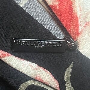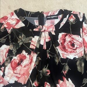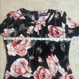Karl Lagerfeld Black and Pink Rose Stretch Blouse with Bow and Zipper sz est L