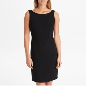 Karl Lagerfeld Black Sleeveless Blue Drape Back Mid-Length Cocktail Women's 4. LBD. Polyester/Spandex with Polyester Lining. A bit of stretch. Little Black Dress. Invisible side zip. Very good used condition. Please see photos for approximate measurements. The last photo shows the back view of the dress in a different colour drape. For reference only.
