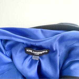 Karl Lagerfeld Black Sleeveless Blue Drape Back Mid-Length Cocktail Women's 4