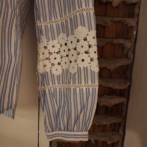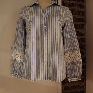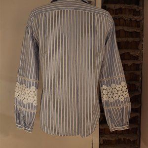 Karl Lagerfeld Button Up Stripe Shirt Lace Accent Size S Small Runs Big