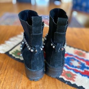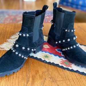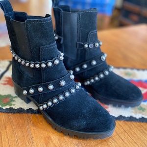 Designer boots in like new condition! Black suede leather with beaded straps. A few beads are (unnoticeably) missing, but I bought them like that. Too big for me, so literally worn them just once!