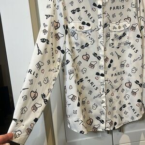 Karl Lagerfeld French Streets Roll Sleeve Button Down Blouse White & Black Sz M