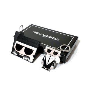 Karl Lagerfeld "Karl" black faux leather card case & keychain bundle