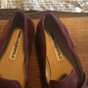 Karl Lagerfeld loafers in a rich burgundy suede with chain details. Super on trend for fall. Size 6.5. Good clean condition.