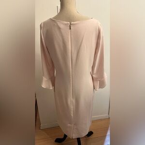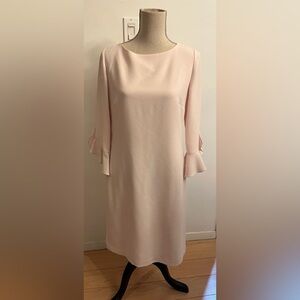 Karl Lagerfeld Paris Blush Pink Shift Dress with Tulip Sleeve and Scoop neck. Beautiful polished look.