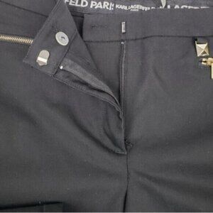 Karl Lagerfeld Paris Cropped Straight Skinny Black Dress Pant Gold Hardw…