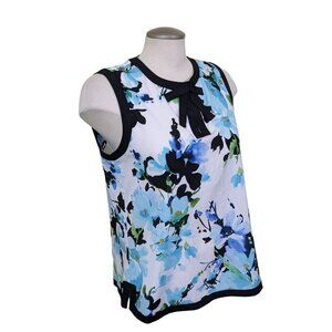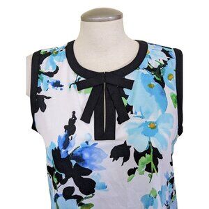 Karl Lagerfeld Paris Sleeveless Top Womens Size M Blue Floral Blouse Neck Bow