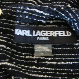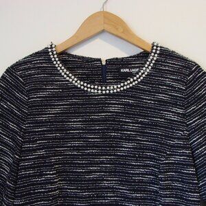 Karl Lagerfeld Paris Tweed Sheath Dress Navy Blue White Pearl Details Office 12