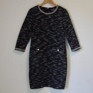 Karl Lagerfeld Paris Tweed Sheath Dress Navy Blue White Pearl Details Office ~ Size 12 ~ 59% Polyester, 35% Cotton, 6% Rayon