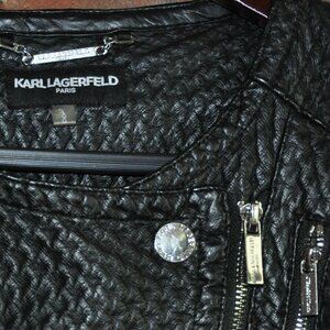 Karl Lagerfeld Paris Woven Texture Black Faux Leather Motorcycle Moto Jacket L