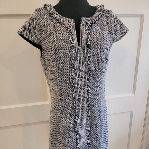 Navy and white, short sleeved, form fitting dress by Karl Lagerfeld. Great for office.