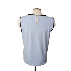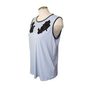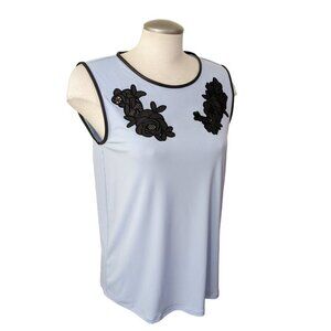 Karl Lagerfeld Women Sleeveless Top M Icy Blue Floral Appliqué Faux Leather Trim