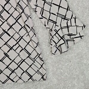 Karl Lagerfeld Womens Long Sleeve Blouse Size Medium White Black Check Career