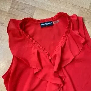 Karl Lagerfeld vibrant Red Ruffle Blouse