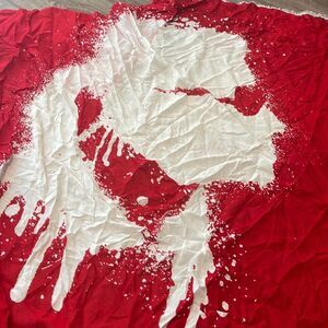 Fringe trim scarf with splattered Karl silhouetteModal/cotton53.5” x 53.5”