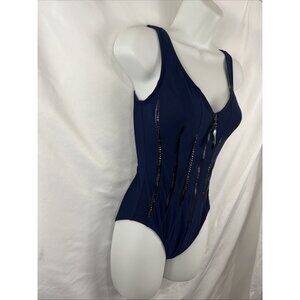 Karla Colletto Navy Blue & Black One Piece Zip Bathing Suit Women's Size 6