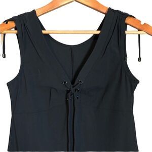 Super cute swim dress with ties on the bust and straps. Good condition but there is a bit of a mark on one side of the bust (refer to photos). Perfect for the summer. Bottoms not built in it is kinda like a slip dress made of swim material.