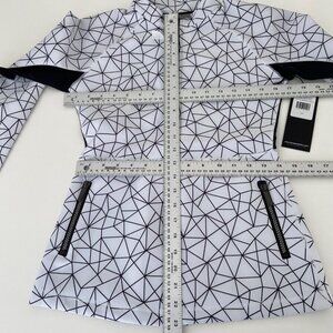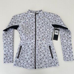 Karma Athletics White & Black Geometric Full-Zip Womens Jacket Lightweight Activewear Long Sleeves Size small