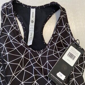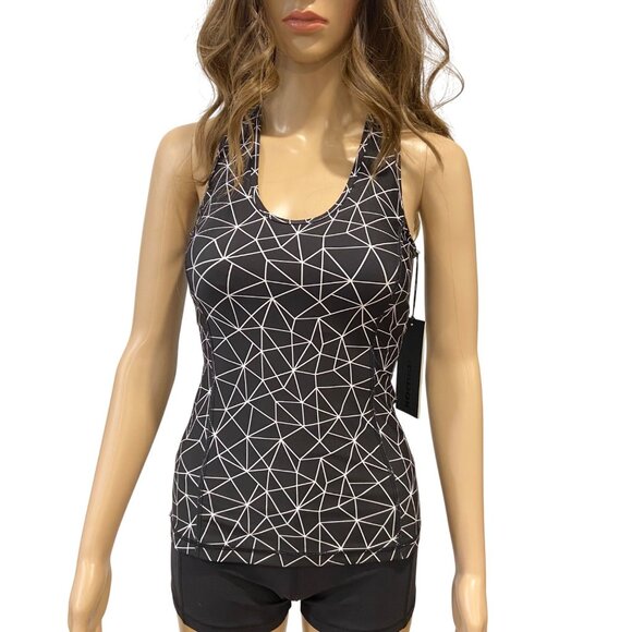 Karma Black & White Geometric Print Racerback Tank Top self bra with pads