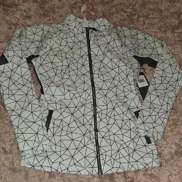 Stylish women's jacket featuring a striking geometric pattern. Perfect for adding a modern touch to your wardrobe.