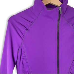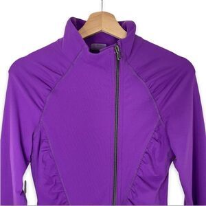 This is a Karma Purple Ruched Mesh Panel Zip Jacket