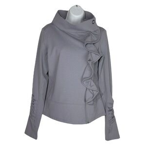 Karma Sam Suu Light Gray Zipper Front Ruffled Athletic Jacket Womens Large