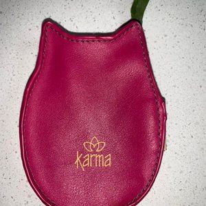 Karma artisan made leather satin lined change purse. 10/10 cond 5” x 3”
