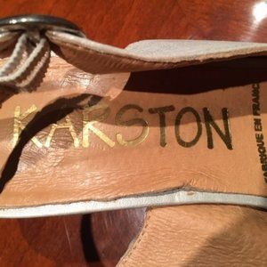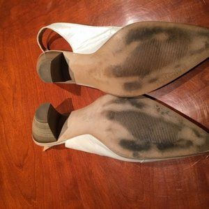 Beautiful pearlized white Karston slingbacks / made in France / Leather upper / size 10.5 Worn a handful of times. Condition: Great!