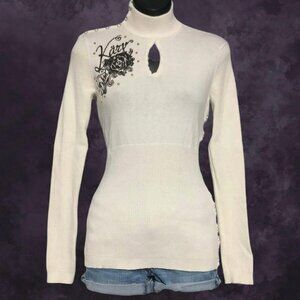 •Y2K cream studded sweater top w/grommets + keyhole + thick waistband by Karv ‧₊˚.