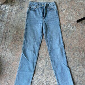 she’s got it all: the vintage raw denim look you love, with just the right amount of stretch to keep you (and your lady-parts) comfy all day long, and a figure-hugging yet relaxed fit. no gatekeeping here — these high waist, straight leg jeans are the most flattering pants you’ll ever own.
