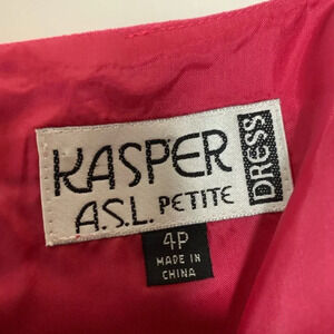 Kasper A.S.L Petite Vintage Square Neck Hot Pink Dress Size 4 Petite Lined.