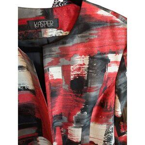 Beautiful artistic red, black and white design on an open style blazer.
